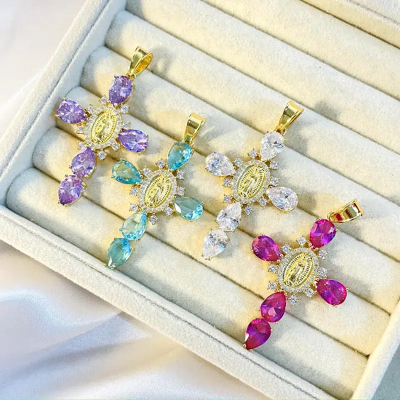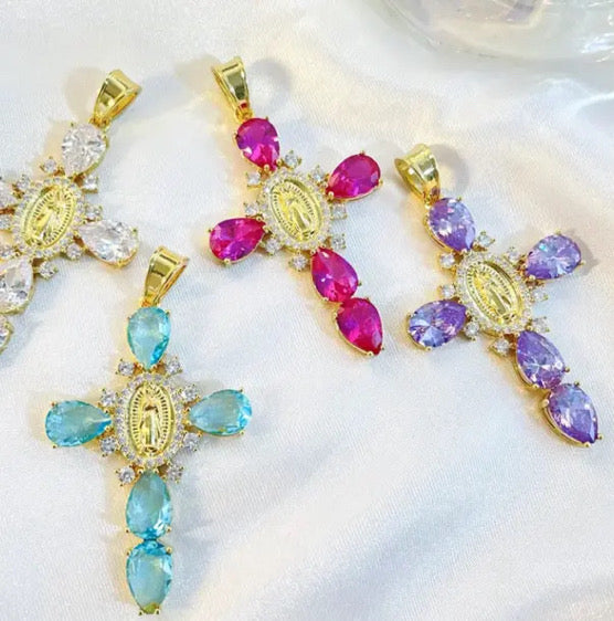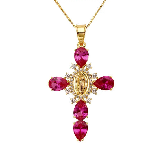 Virgin Mary Cross, the centrepiece of this necklace is a stunning cross pendant adorned with ICY stones surrounded by Mother Mary. It’s a timeless design and carries a touch of elegance and spirituality, making it perfect for both everyday wear and special occasions.